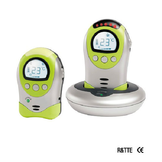This digital baby monitor has an automatic back lighted LCD for easy viewing and provides room temperature indication, battery status indication and low battery alert. It includes a baby unit with night light and offers audio and visual alert for out of range and high or low temperature. The digital baby monitor is powered by a li rechargeable battery and has an operating range of 600m in open space.