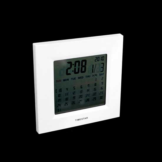 This is a digital calendar that boasts a neat and simple appearance. The allover white quadrilateral casing is easy to match with any interior decoration. The electronic calendar is also designed with an alarm clock function for added utility.