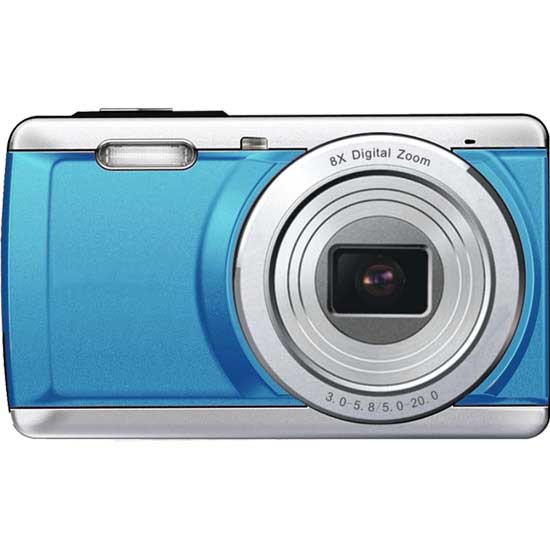 This digital camera features a high resolution and powerful zoom function for your photo taking. Designed in a bright blue color, this camera appeals to female users. This user-friendly camera is ideal for daily snap-shooting and travel.