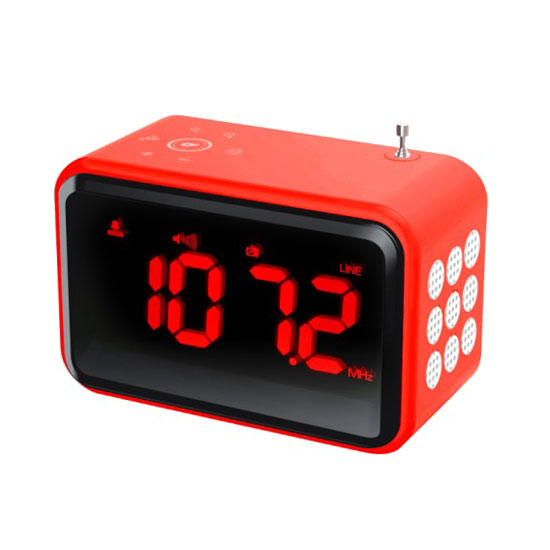 This is a digital clock with an eye-catching appearance. It features a rectangular casing in bright red. The compact size allows users to carry it with them on the go.