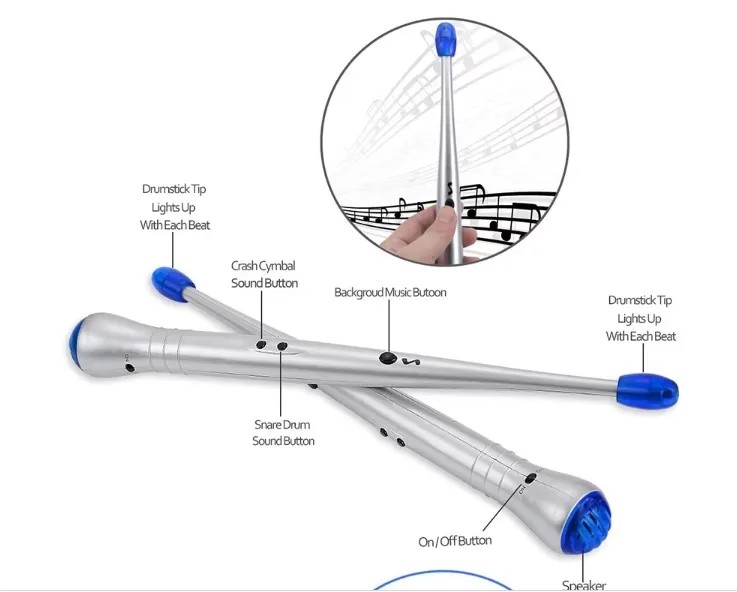 Tip of the Drum Stick will light up with each beat.