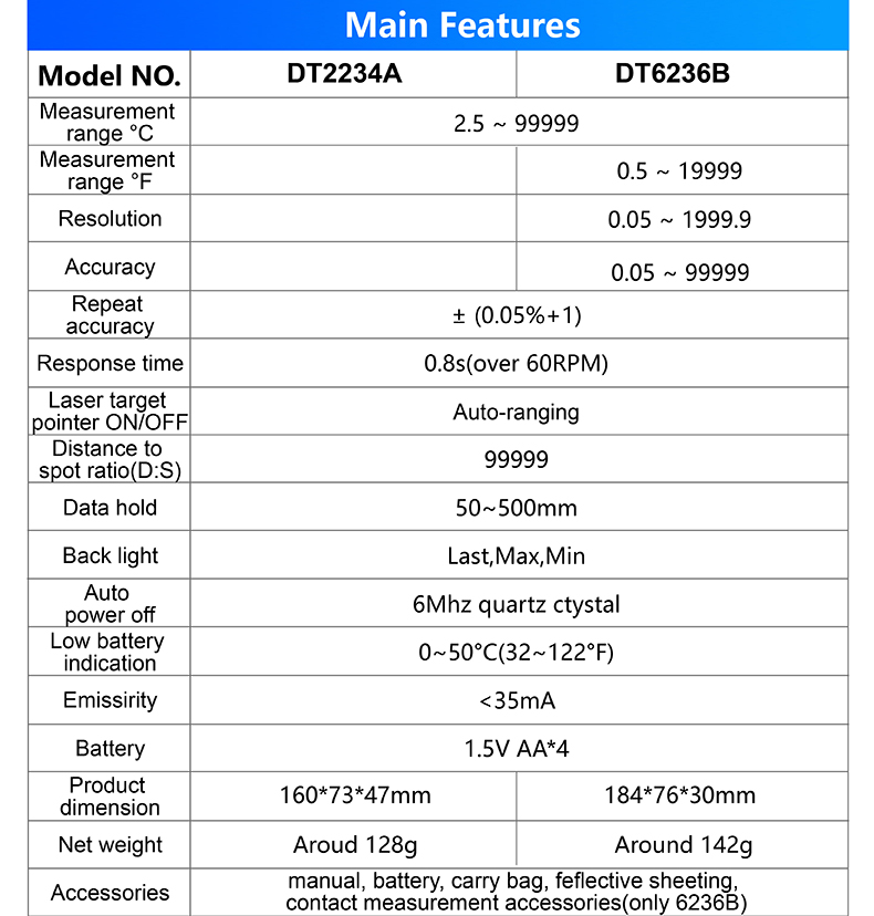 Digital Laser Photo Tachometer DT2234A RPM Non Contact Photoelectric Tachometer