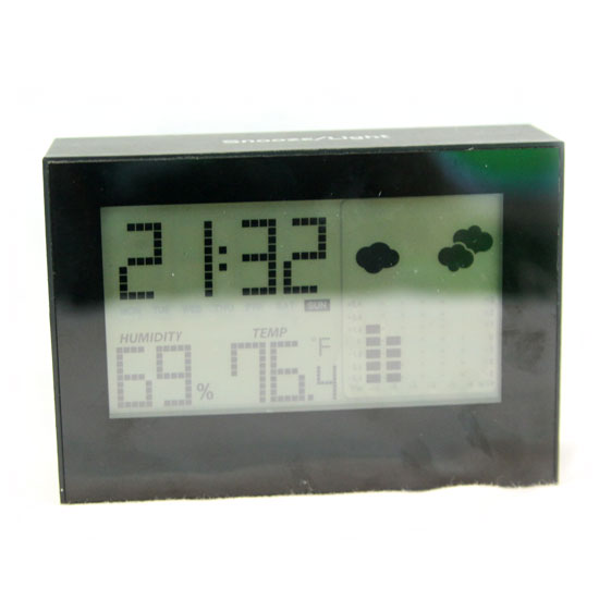 This practical table clock informs users of the weather, humidity and temperature. With a digital display, this table clock allows easy reading. Made with a simple design, this clock is ideal for homes and offices.