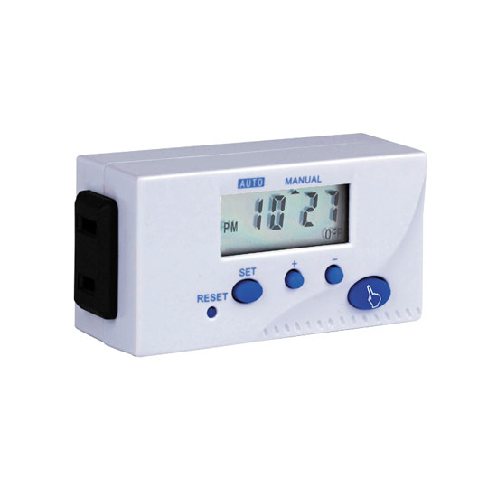 This is a digital timer with a rectangular housing. It features user-friendly buttons and a big LCD display for showing time-of-day information. Well engineered, this gadget delivers reliable performance with high stability.