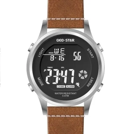 Digital Watch, alloy case, PU leather strap, 5ATM