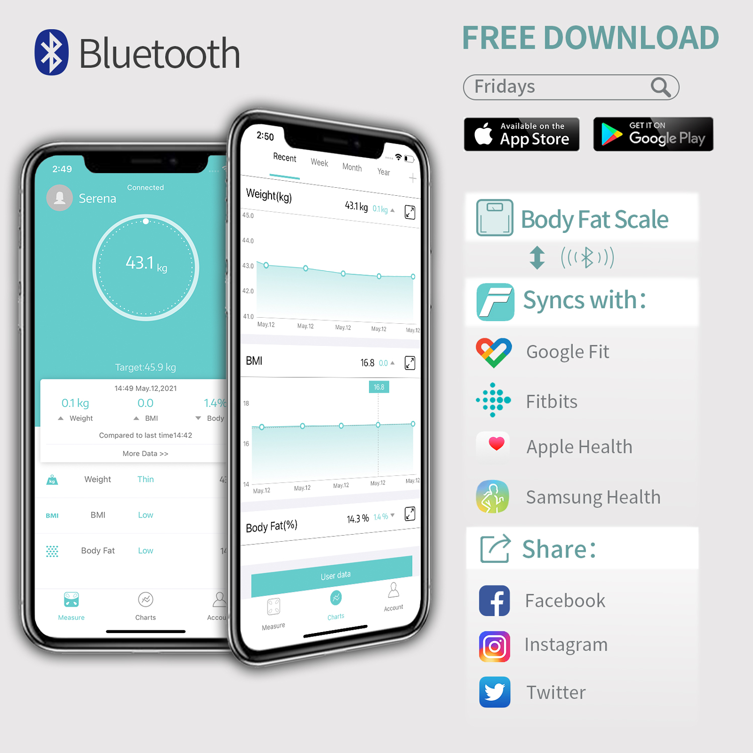 Viatom body fat monitor is incredibly helpful for those pursuing a healthier diet or working out for body fitness. By syncing the smart digital scale to mobile device via Bluetooth, people can not only know the real-time data of weight and body composition but also graphically review the ups and downs of readings over time by week, month and year. Help users better understand body metrics.