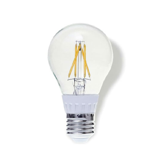 This A19 6W LED filament bulb delivers incandescent-like sparkling light effects. It boasts very low energy consumption and an extremely long service life. It is ideal for general and decorative lighting in the hospitality industry, as well as in home environments.