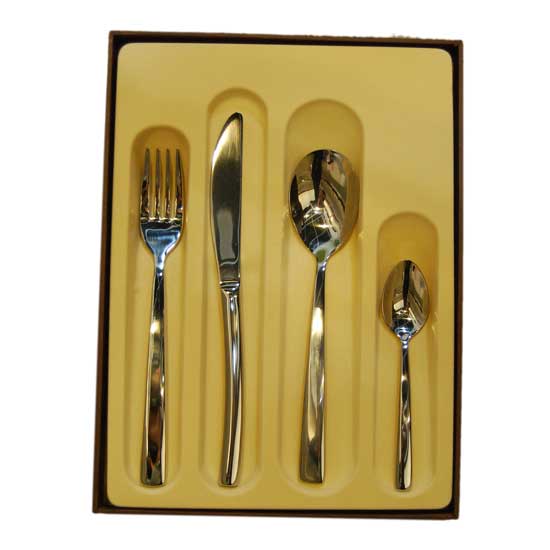 This is a 4-piece flatware dining set made of stainless steel. The flatware set offers easy-to-grip handles for comfortable use. The lovely design of this flatware set brings a stunning addition to any table setting.