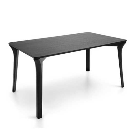 This sleek dining table features a classic rectangular shape and a simple, minimalist design, making it ideal for modern homes. Four sturdy legs hold the table steadily in place. This gorgeous dining table is a timeless addition to your home.