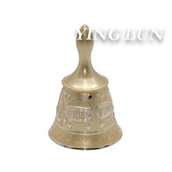 As shown is a dinner bell which is constructed of durable material. This piece imparts an elegant touch with its champagne tone. It is further graced with enchanting starry and other exquisite patterns.