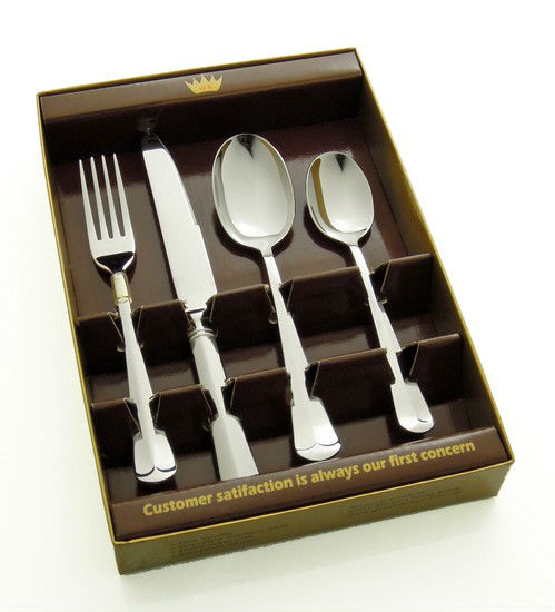 Enjoy delicious meals with this exquisite set of cutlery. It comes with a table fork, a table knife, a table spoon and a tea spoon. They are crafted with amazing attention to details and flaunt a shiny mirror finish. The handles have a stylish design and offer a firm and comfortable grip. Packaged in a nice box, this dinnerware set is perfect for gifting.