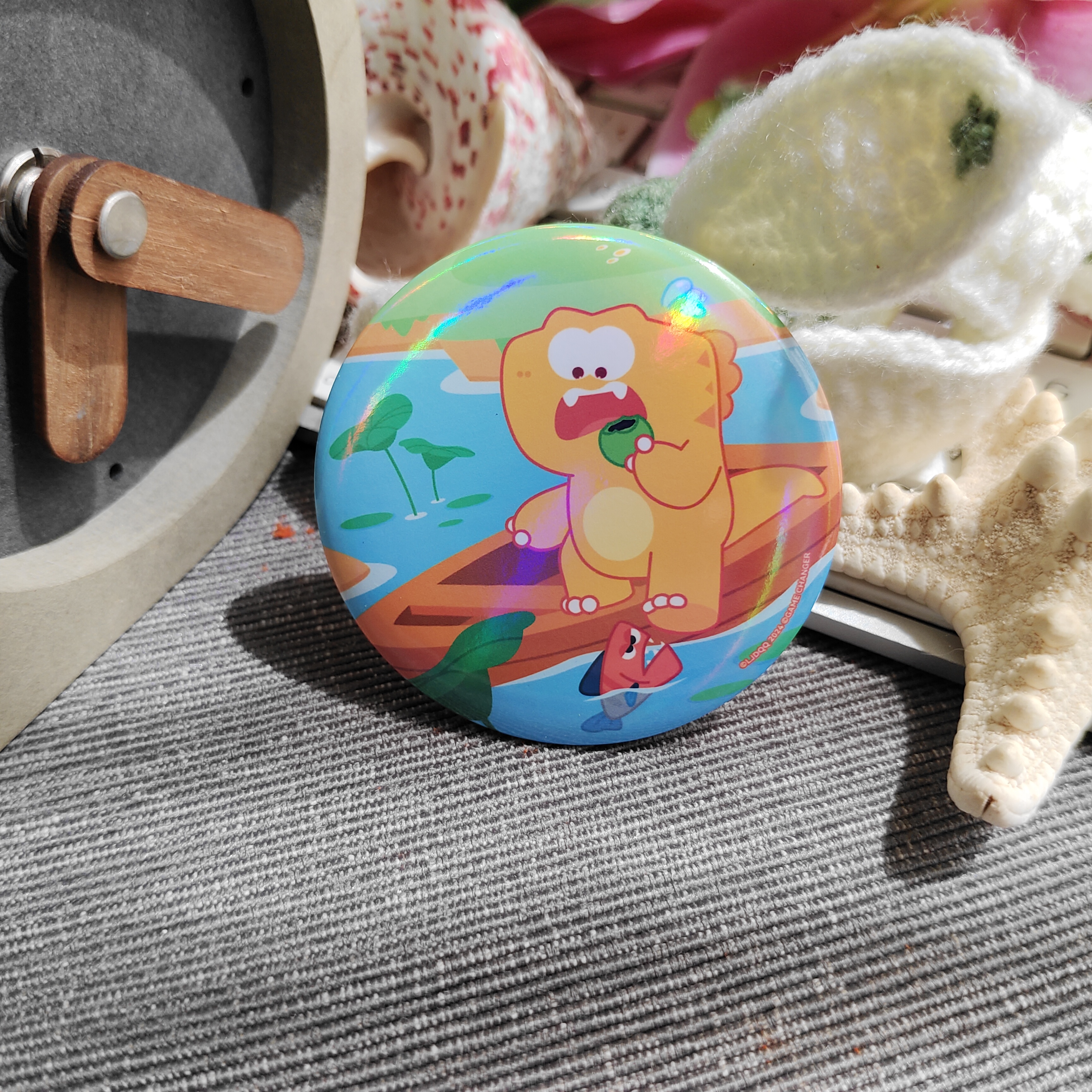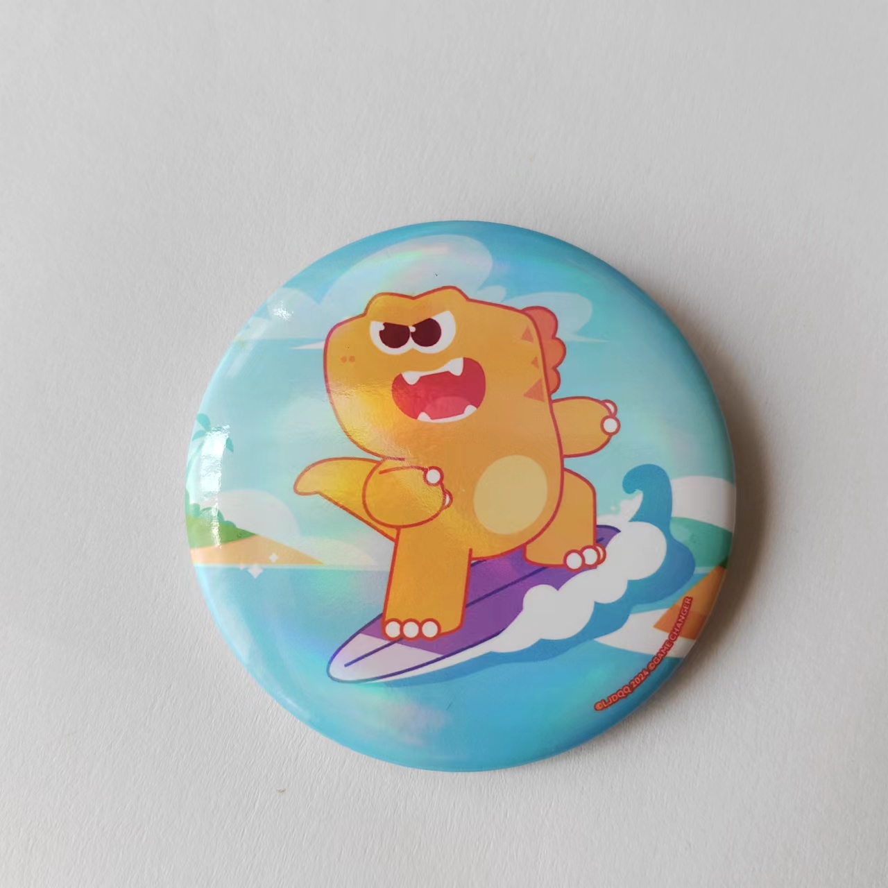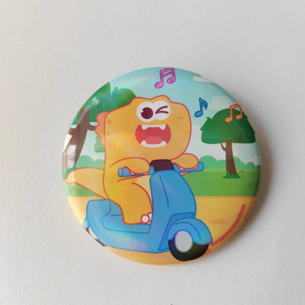 A circular badge from the dinosaur Qiqi themed collection