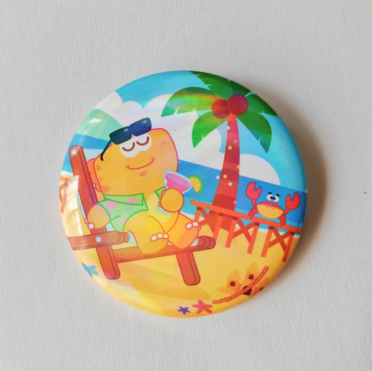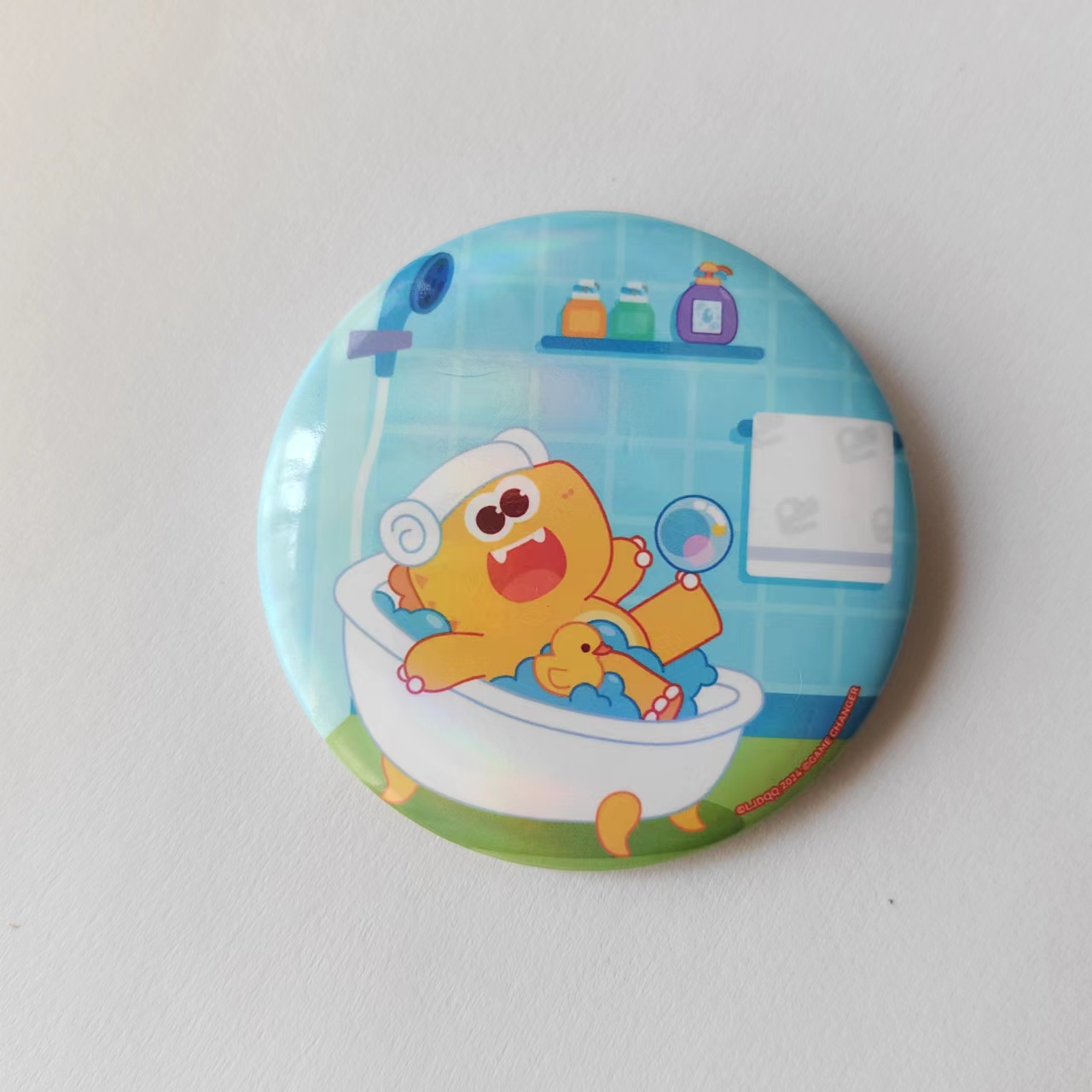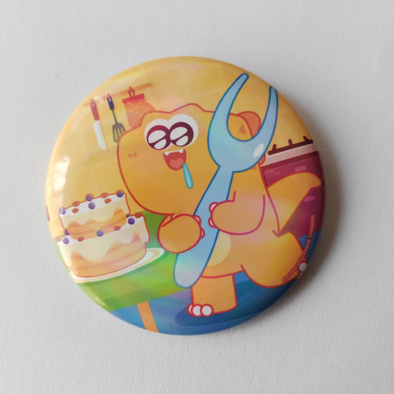 A circular badge from the dinosaur Qiqi themed collection
