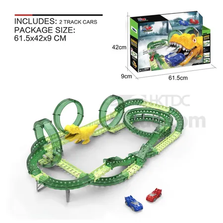 Create your own dinosaur themed race track. More accessory, More ways to play. Learn to cooperate. Exercise hand-eye coordination and color perception.