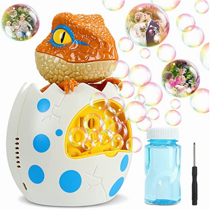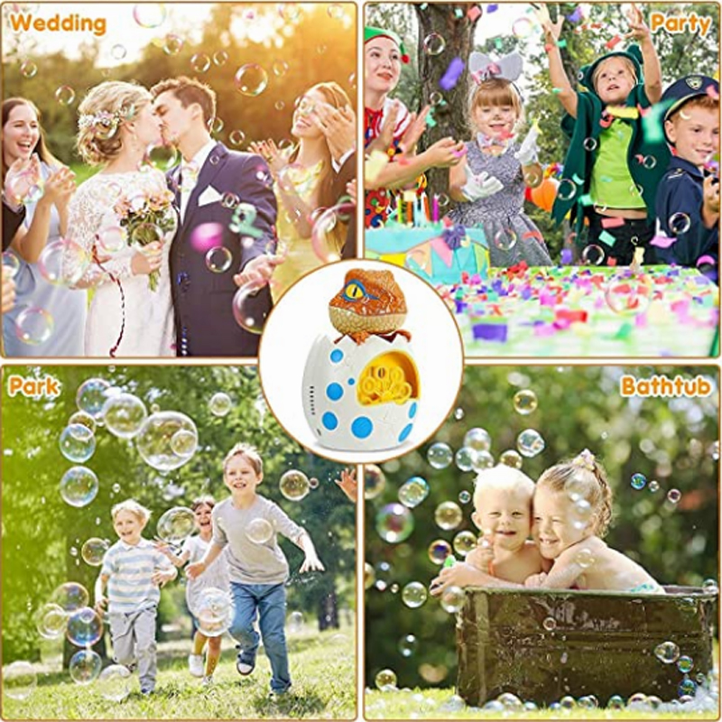 Dinosaur Egg Design: Children of all ages will be very excited about this automatic bubble machine! This bubble machine has 8 bubble wands, this battery-powered bubble maker can create a lot of bubbles per minute in the air, which can save a lot of your time and effort to making colorful bubbles. Let your children enjoy endless happy time.