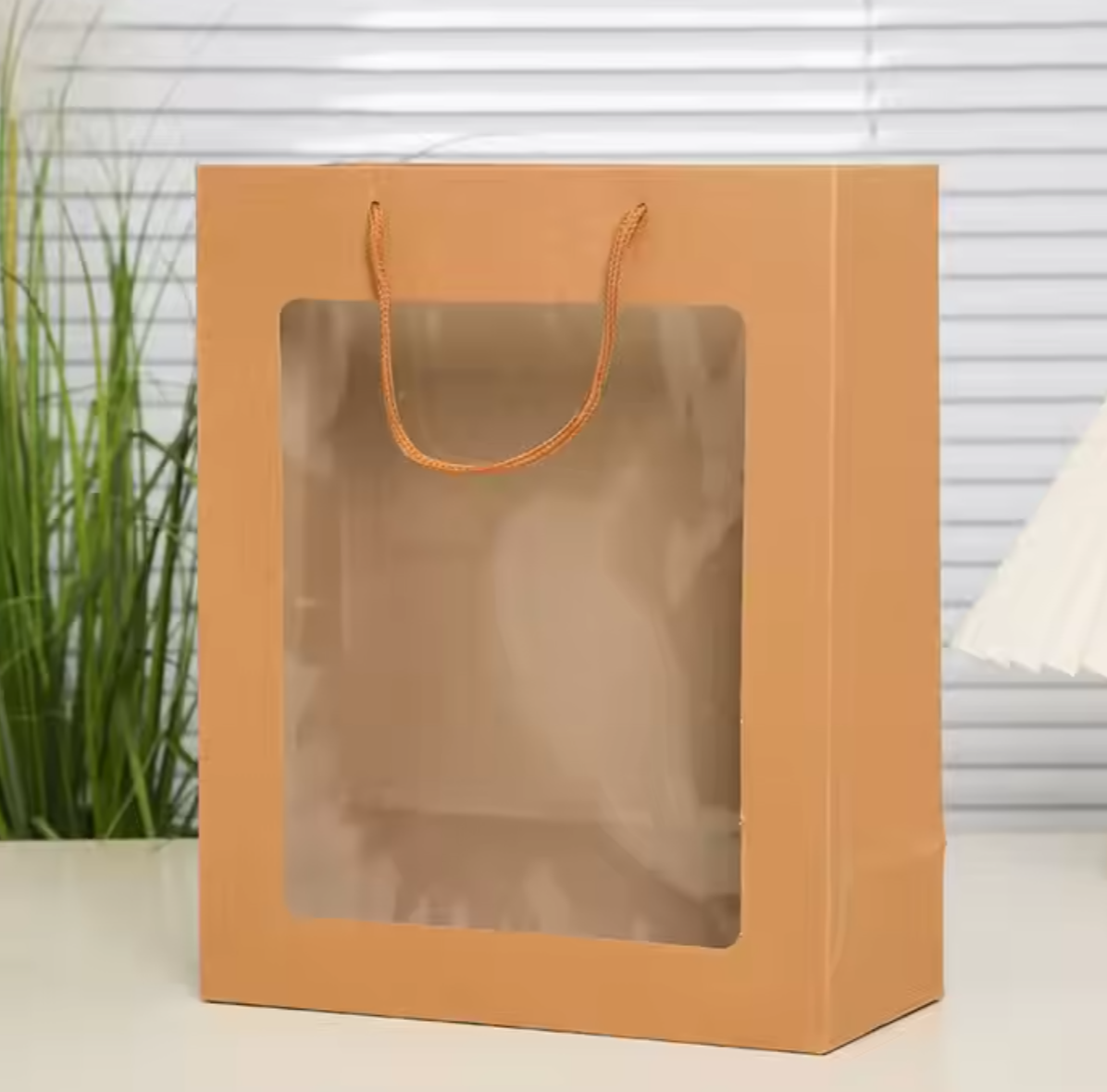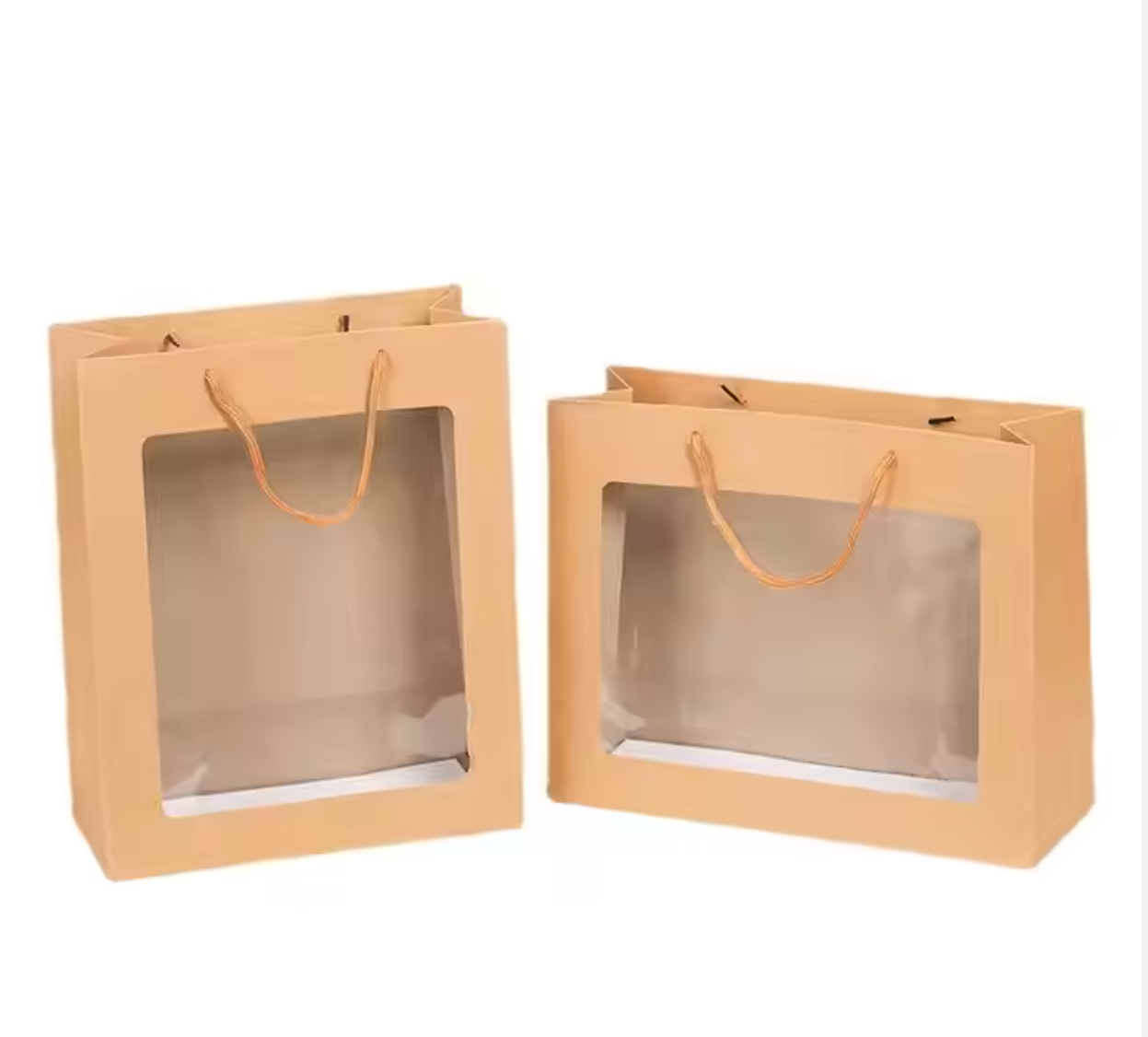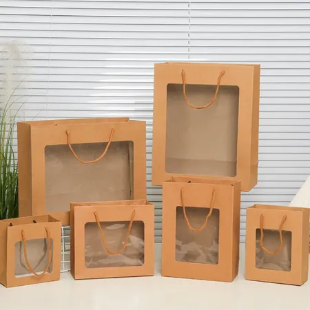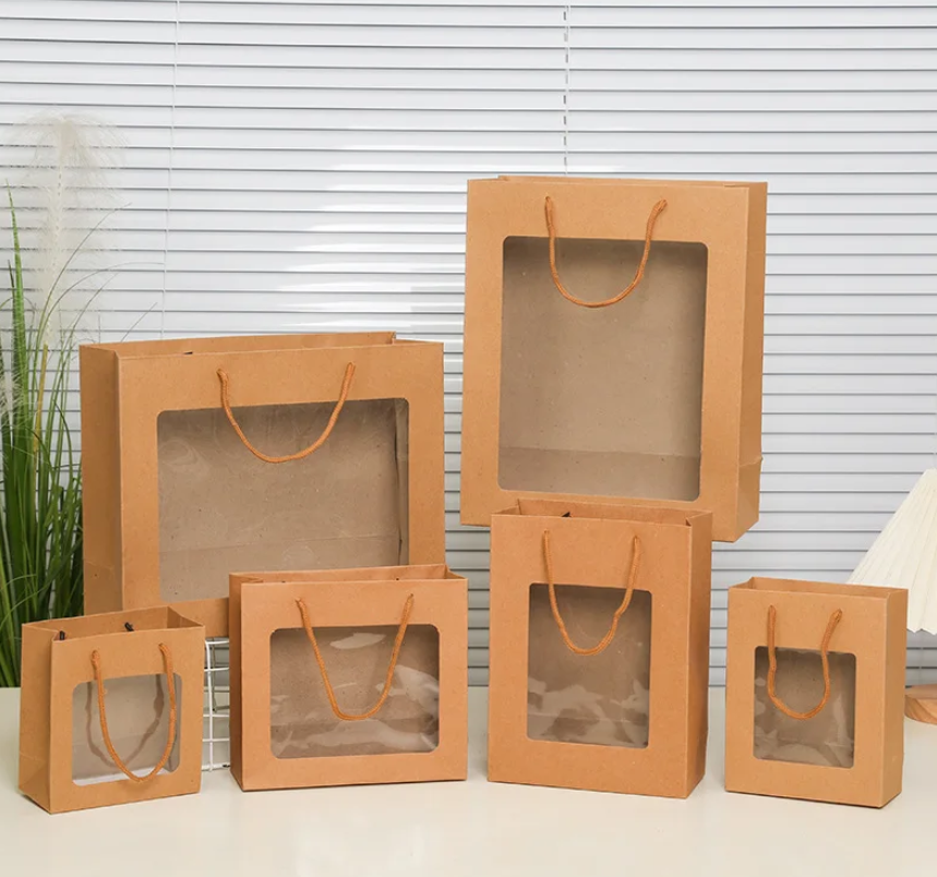 Direct Manufacturer's Portable Kraft Paper Gift Bag Small Snack Bag Transparent Open Window New Self-Supporting Craft Paper Bag