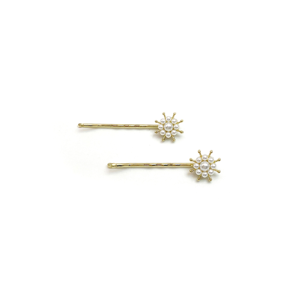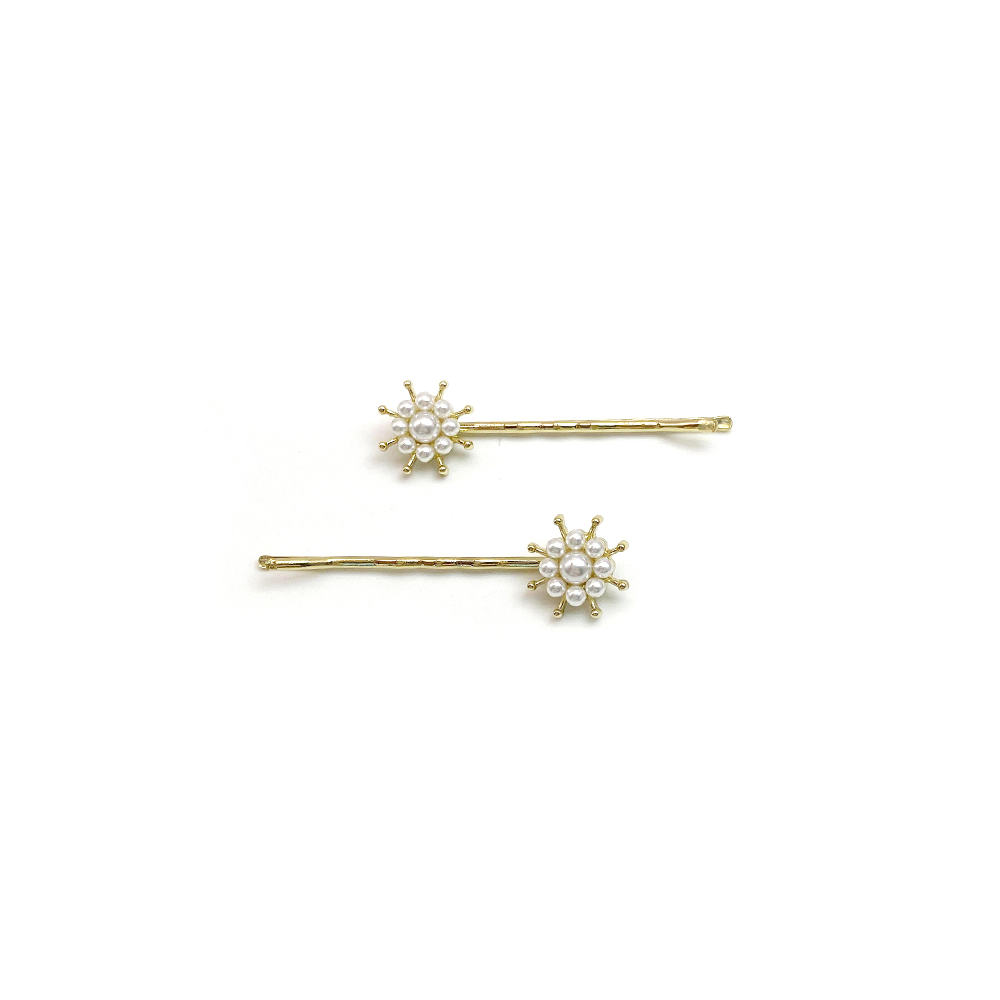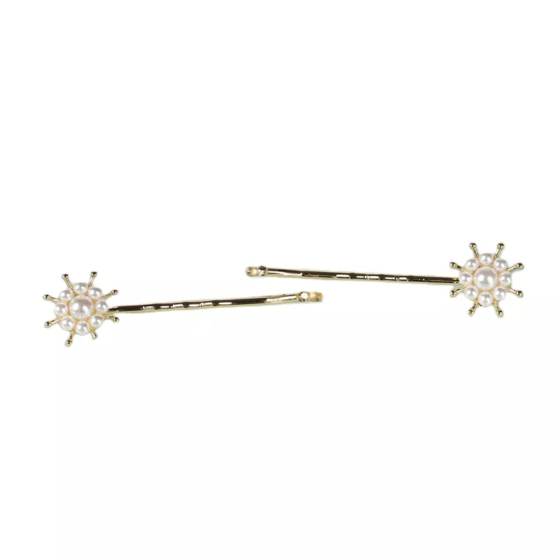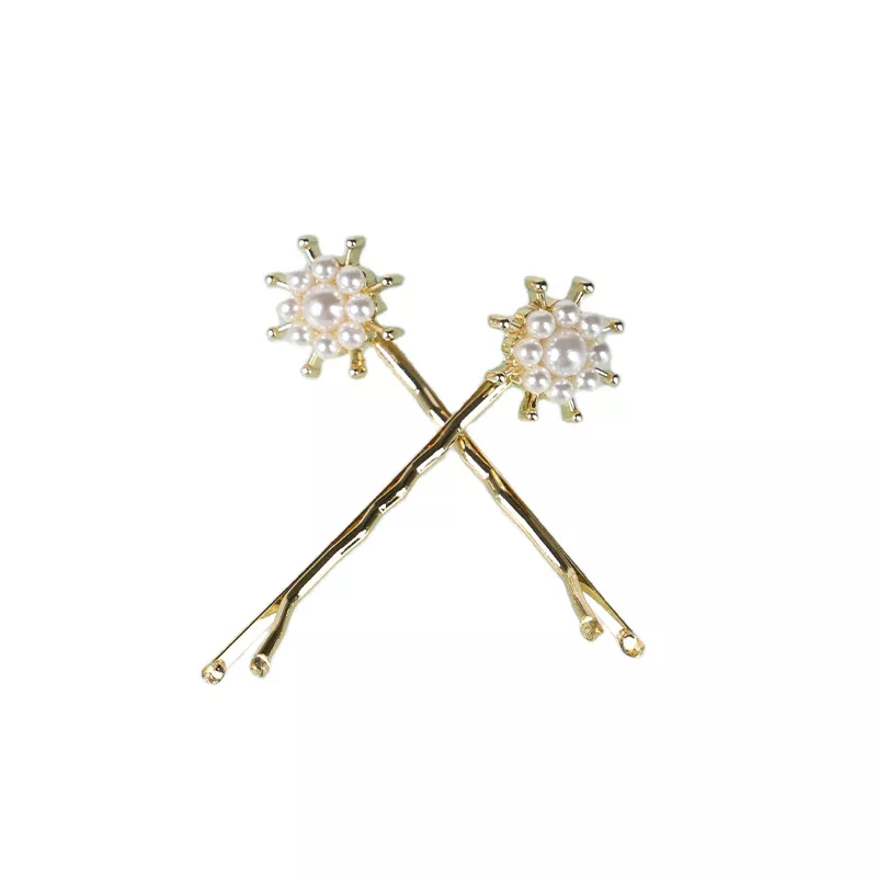 Direct Selling Pearl Hair Accessories Fashion Sun flower Golden Alloy Hairpin From China