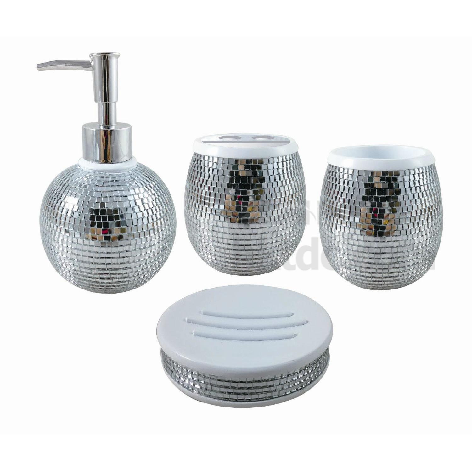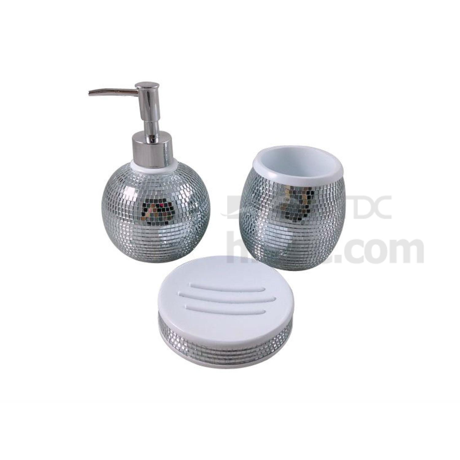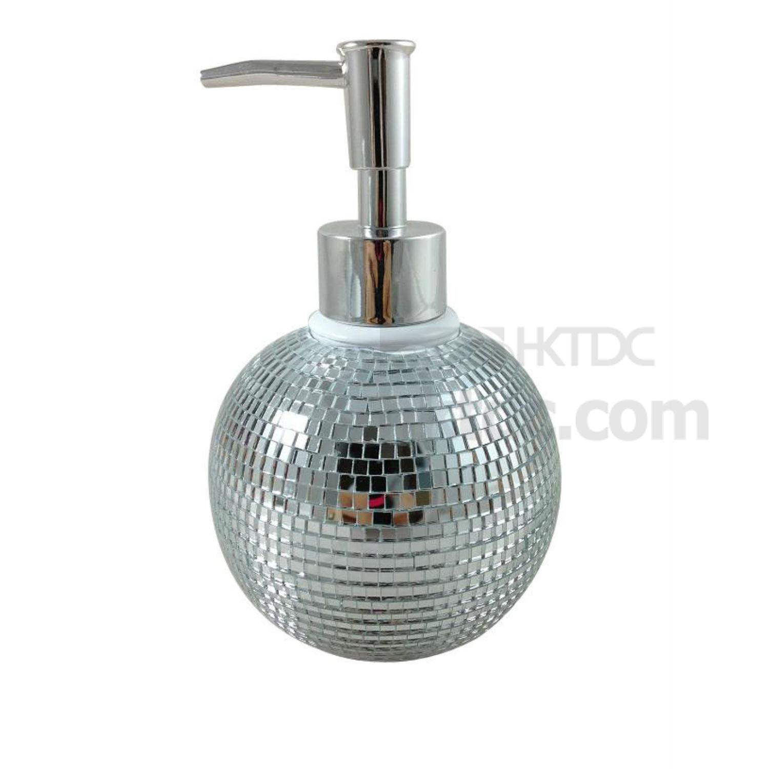 Poly bathroom accessories including lotion dispenser, toothbrush holder, tumbler and soap dish. Disco ball design give you sharkling reflection. With these bathroom accessories, shower time can also be a visual enjoyment.