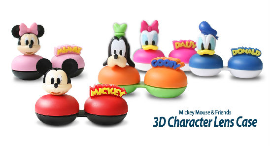 Walt Disney character shaped 3D lens cases that are compatible with the Disney vibrating auto cleaner.