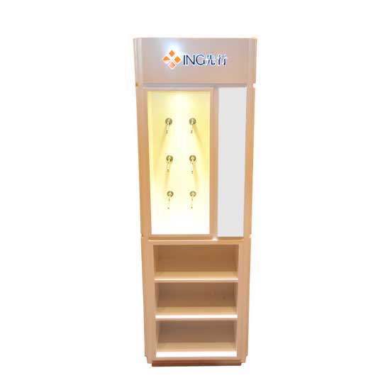 This display rack comes with six silvery hangers and three racks for displaying various items. A rectangular mirror is also designed for extra functionality. This stylish display rack is ideal for exhibition use.