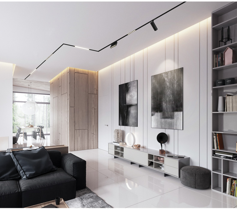 Magnetic lamp is a track-type quick-swap light that uses a magnet to quickly absorb characteristics.The utility model is composed of two parts magnetic track and the lamp. The track has three installation modes: surface mounted, recessed and suspended; the lamp consists of various modular lamp such as flood linear lamp, anti-glare accent linear spotlight, anti-glare high-power spotlight, hanging lamp, wall washer and decorative lamp. The modular lamp can be used alone or in combination. they have good anti-glare effect, and can be combined with spot, line and panel to meet the needs of various lighting requirements. This kind linear magnet lamp is fashionable, wireless lamp .It is a modern lamp to meet architectural design concept . It is an ideal choice for offices, showrooms, specialty stores, hotels, villas, clubs and other places.
