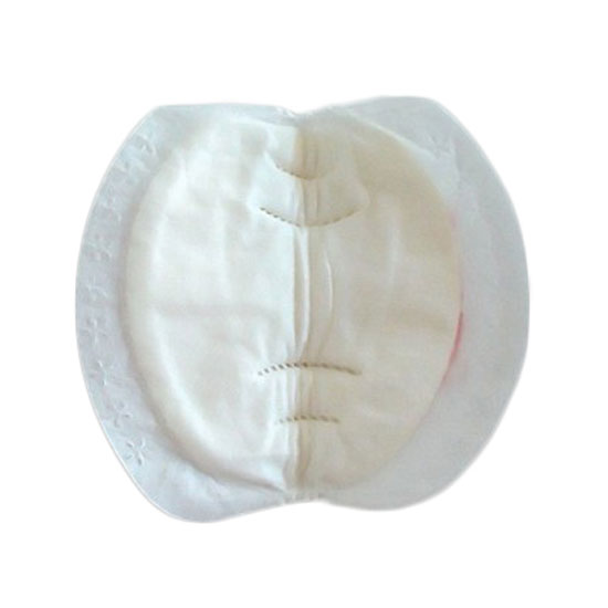 This breast pad is made of layers of fluff pulp and a quilted lining for high absorbency. The self-adhesive breast pad is easy to apply. The breast pad is carefully designed for prevention of the inconvenience and embarrassment caused by leaking milk.