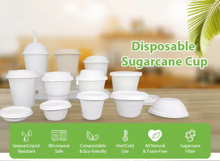 Disposable Cheap Eco Friendly Sugarcane Bagasse Tea Cup Sugarcane Bagasse Large Cups