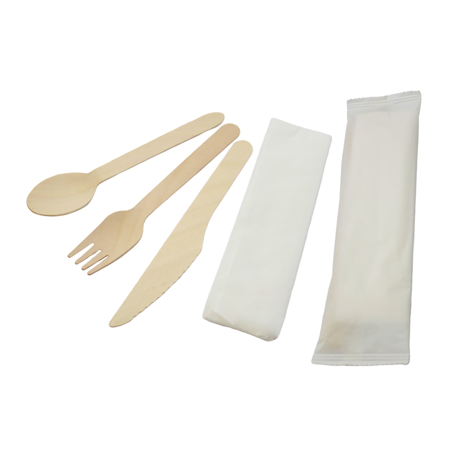 Knife: Length of 16.6 cm, Fork: Length of 15.8 cm, Spoon: Length of 15.8 cm, Paper Tissue: Length of 33 cm x Width of 32.5 cm