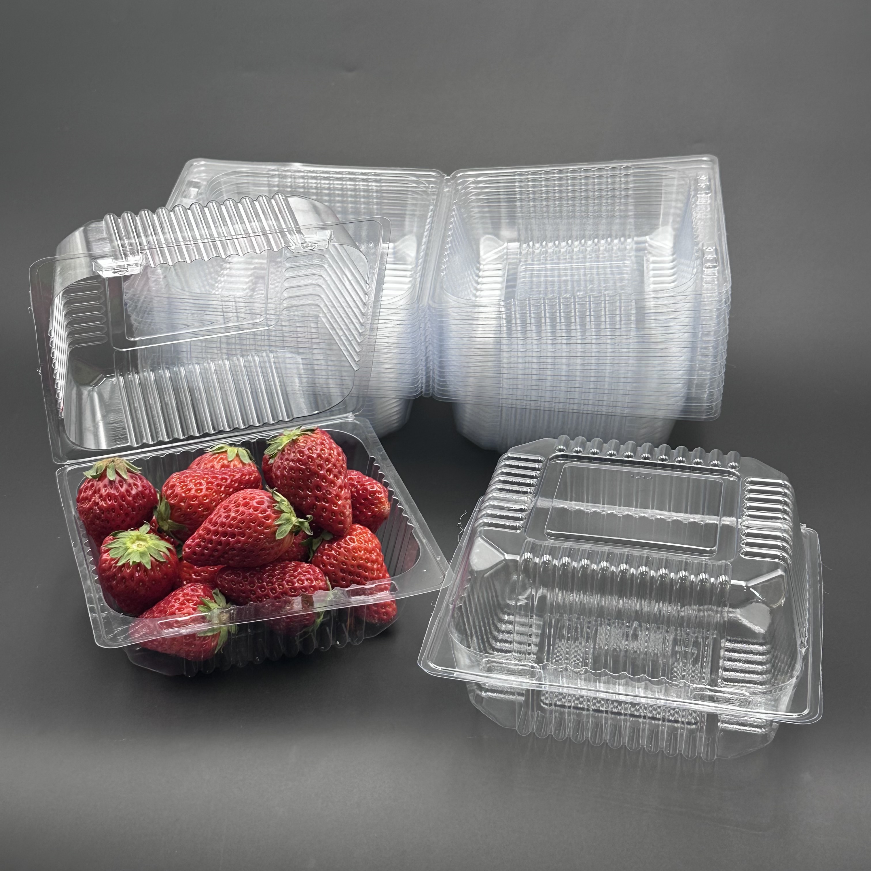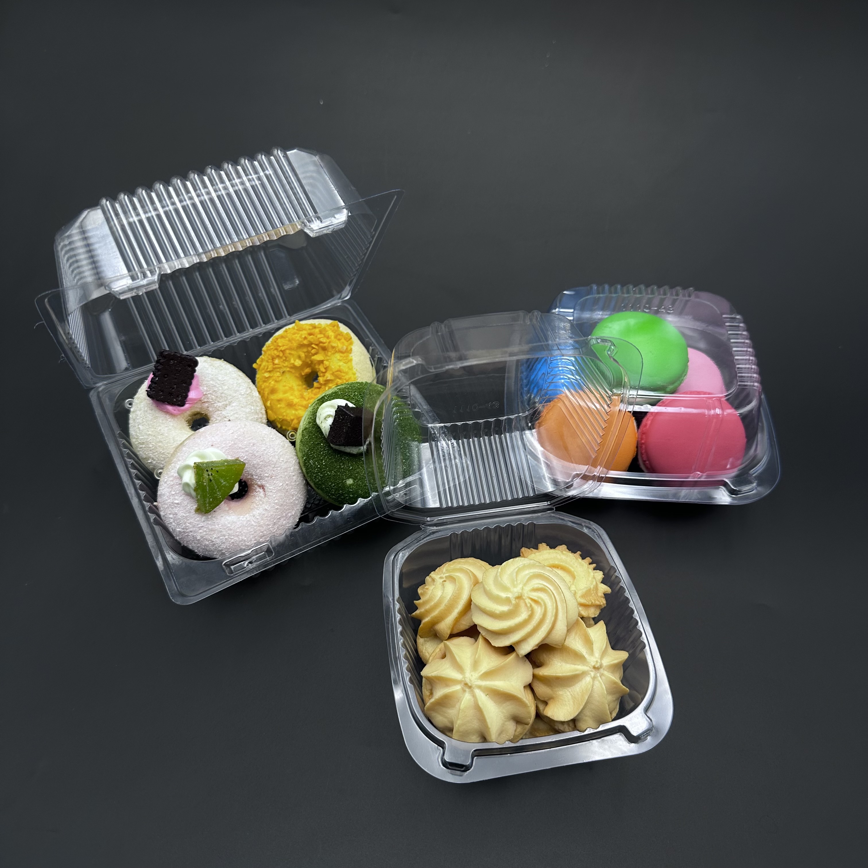 Here shows a series of clamshell design takeaway food boxes, a wonderful addition to your wholesale business offerings. Hinged locking tightly, this product is perfect for your Takeaway Bakery or Agricultural Packaging. Using Transparent Clear material, you can see the inner food directly. Packaging method can be also customized.