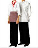Demonstrated is a classy bib apron in bright colored appearance.