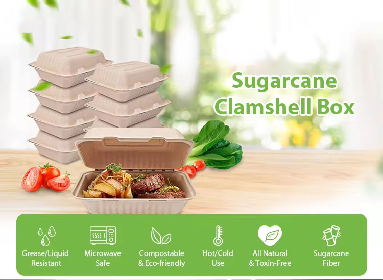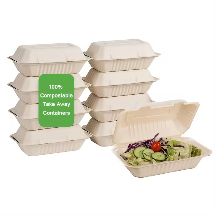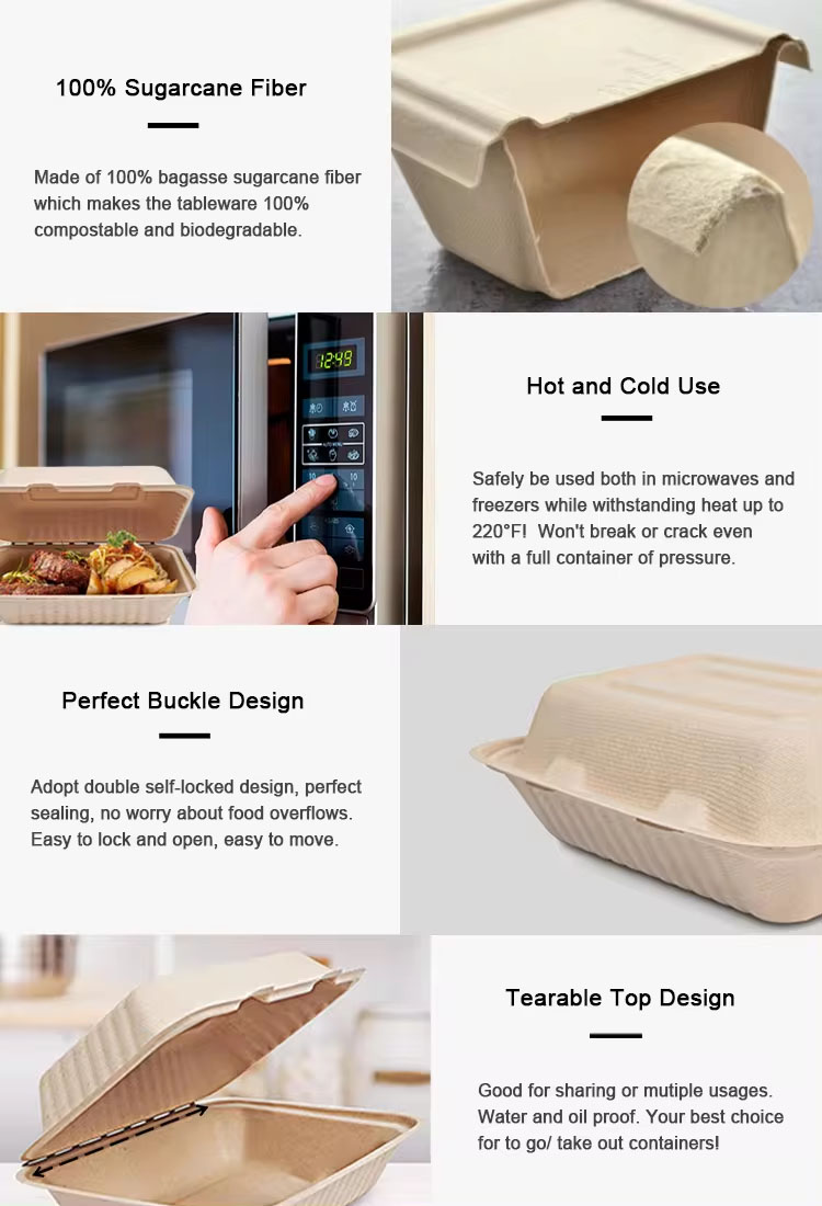 Disposable Sugarcane Bagasse Clamshell Box Take Away For Restaurant