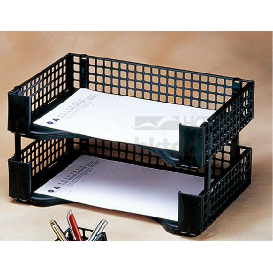 Attached is a stackable office document tray. This 2-tier tray is easy to put together and can be stacked as high as you wish with extra trays. It is a user friendly tray with generous side-loading design and stackable construction. When it is not in use, you can disassemble it and lay it flat. This plain designed tray is a perfect choice to accommodate files and papers in the office.