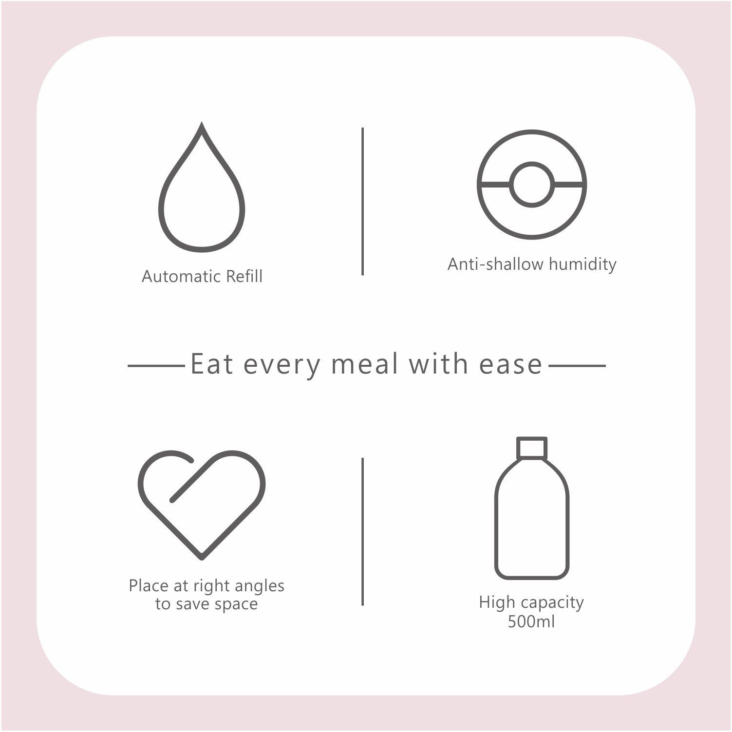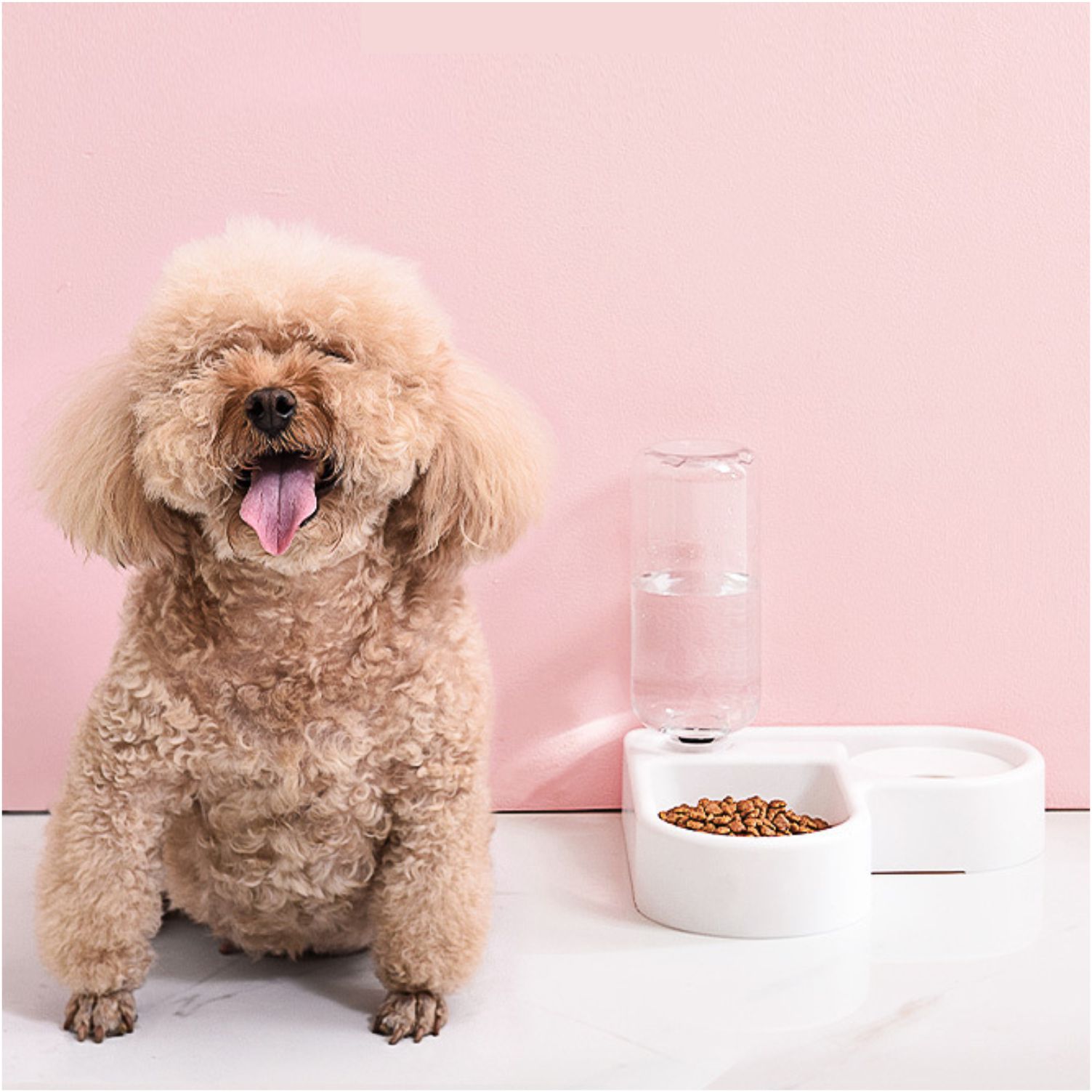 Automatic water dispenser with food bowl: 2 in 1 feeder bowl design,with an automatic water dispenser, it will refill the water into the dish automatically and help to keep the water filled and clean whether you at home or not,best choice for your pets