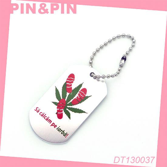 Available is an aluminum dog tag with a debossed logo. This piece is completed with a silver finish. The tag is also compliant with various standards.