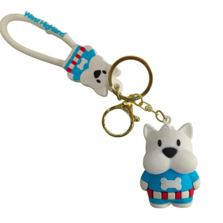The design is inspired by dogs, which are beloved pets known for their loyalty and cuteness. The dog is dressed in a outfit with a bone - shaped pattern, likely to enhance its charm and make it more appealing to dog lovers. The overall design aims to capture the adorable and friendly essence of dogs, providing a cute and endearing accessory for key - carrying.