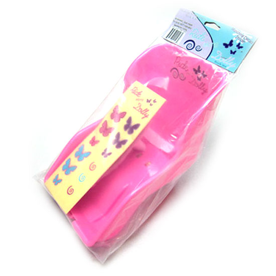 This is a lovely rear doll seat designed for girls’ bicycles. The size of the carrier seat is perfect for holding a doll or a stuffed animal. It is a functional and stylish accessory for your little girl's bike.