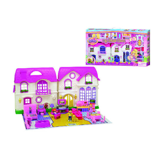 This is a charming doll house with a stylish and fashionable design. It is made of quality materials for a long service life. This doll house is designed in vivid colors for an eye-catching look.