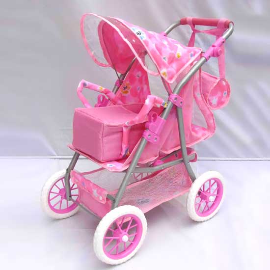 This toy pram comes with a realistic structure comparable to a real one. The pink details with cute patterns look adorable for little girls. Let your children enjoy the fun of nursing with this doll pram.