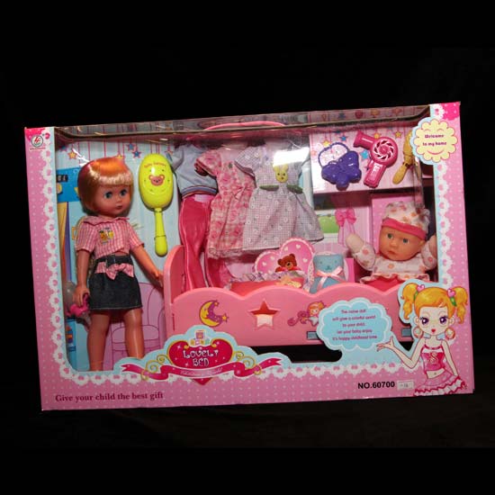 This doll set comes with a lovely bed and a baby doll. It features changeable dresses in fashionable styles, handbags and various accessories for adorning the gorgeous doll. The doll set simply makes a girl's favorite toy.