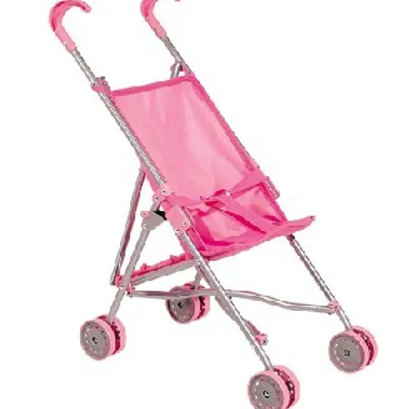 This doll stroller comes with a chic design. The seat is made of soft and durable fabric. It is equipped with a pair of plastic handles, 4 sturdy wheels, a safety belt.