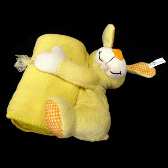 This set includes a rabbit doll and a towel. The hands of the rabbit are attached with a ribbon, which can be tied to hold a towel. This item is a great decoration to embellish your child's room.