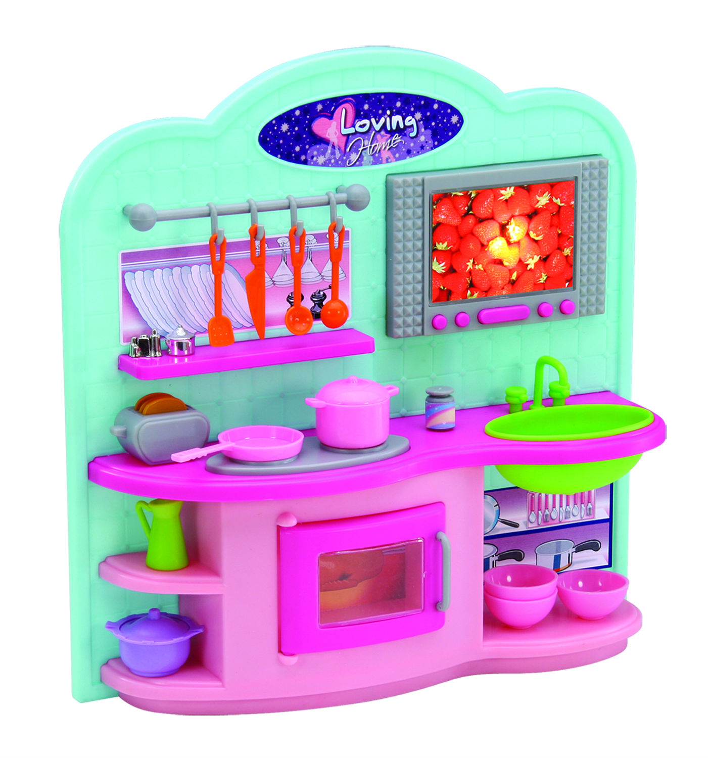 This mini toy kitchen set features a worktop with a stove, oven, basin and numerous kitchen accessories. All the toy kitchen ware boasts a colorful exterior to attract kids' attention.