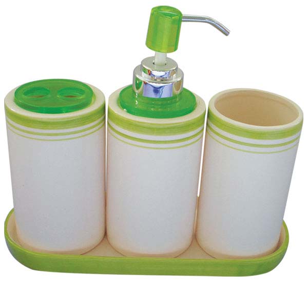• Set of 4 dolomite bathroom set, include lotion pump, tumbler, brush holder, soap dish.