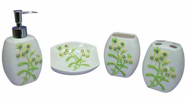 • Dolomite flower pattern bathroom set with diamond, include lotion pump, tumbler, brush holder, soap dish.