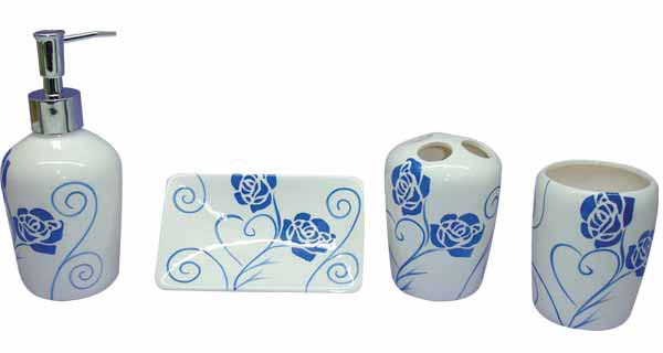 • Dolomite flower pattern bathroom set, include lotion pump, tumbler, brush holder, soap dish.