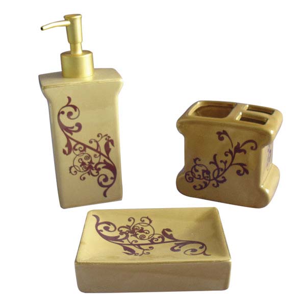 • Set of 3 dolomite bathroom set, include lotion pump, tumbler, brush holder, soap dish.