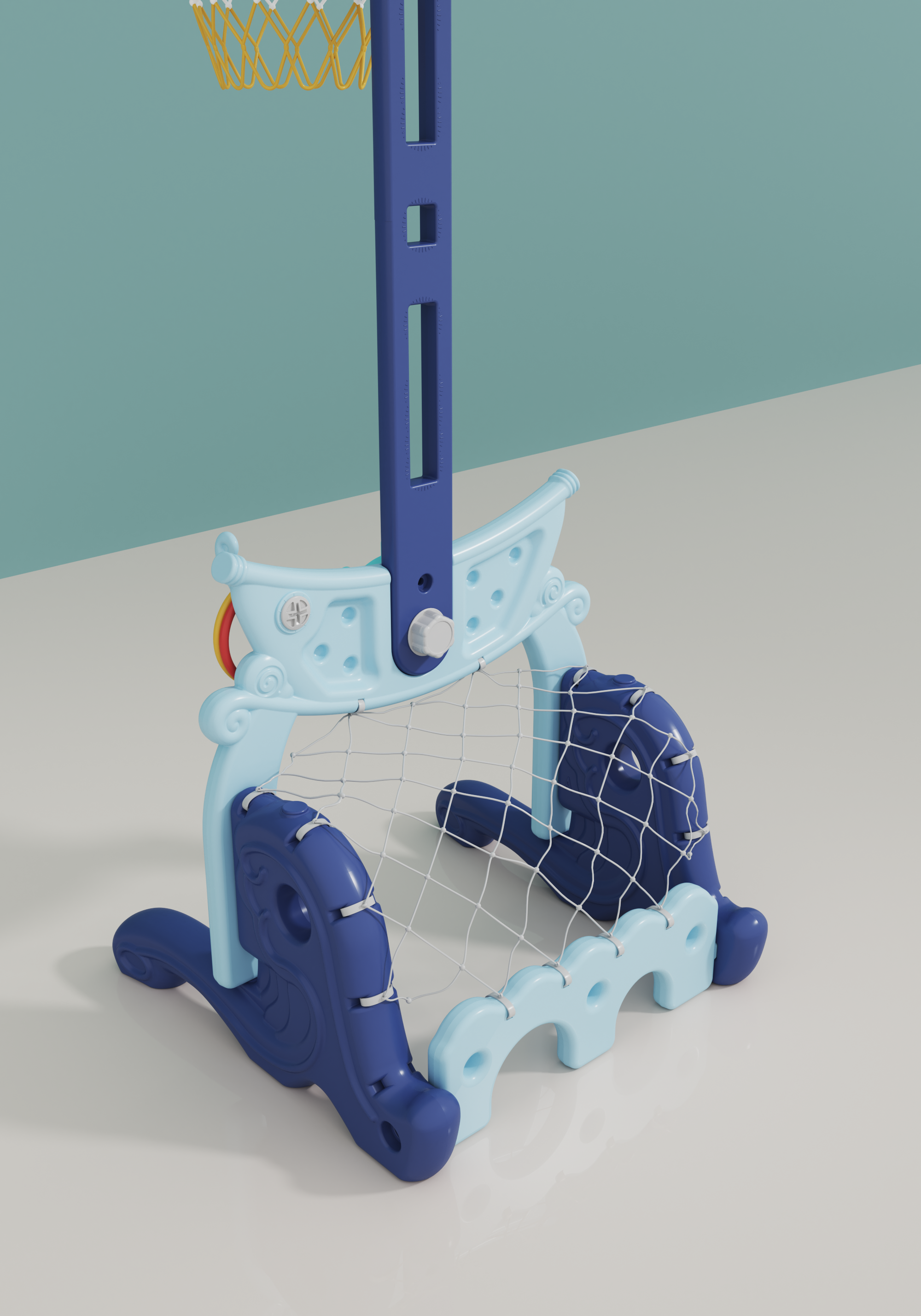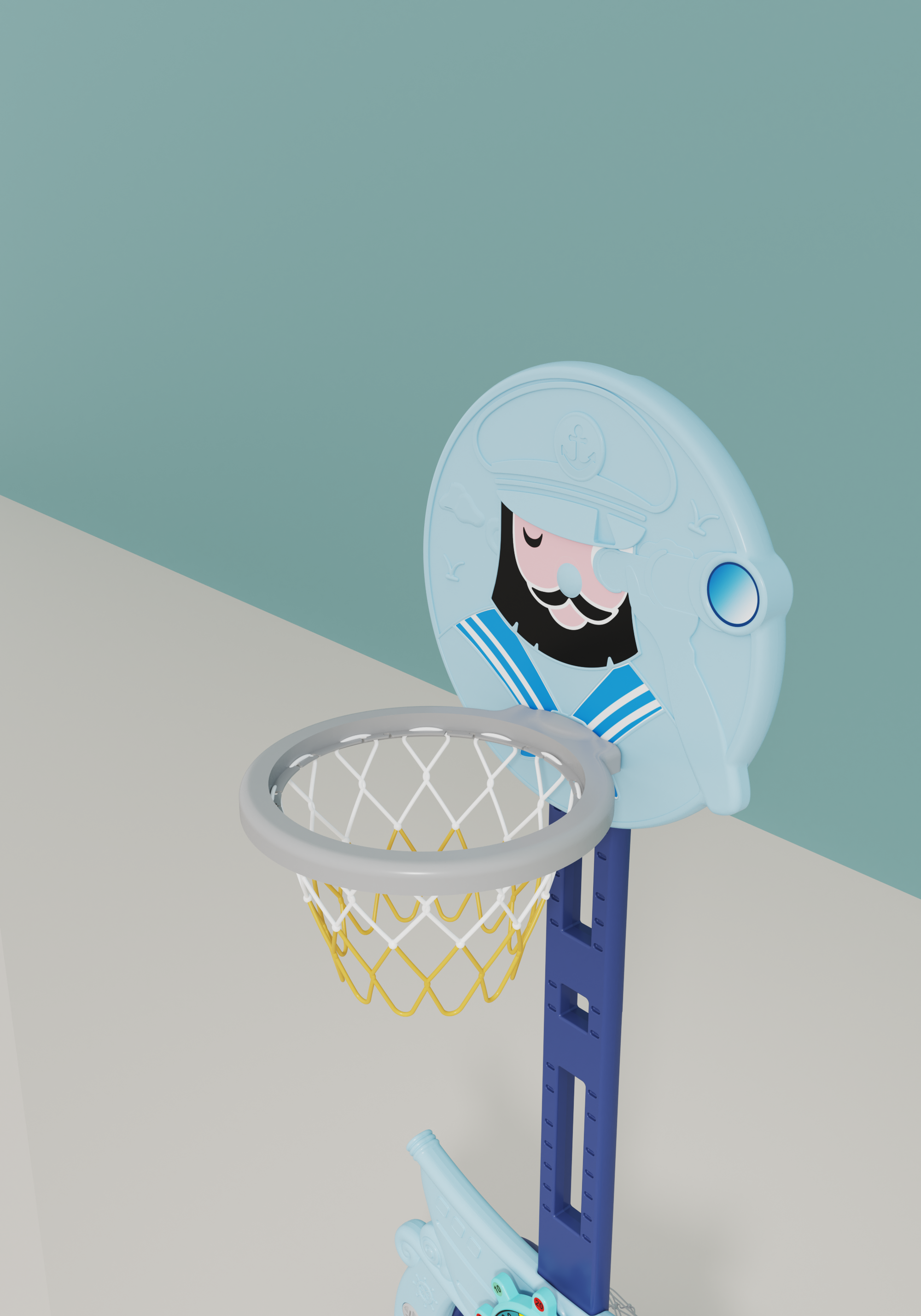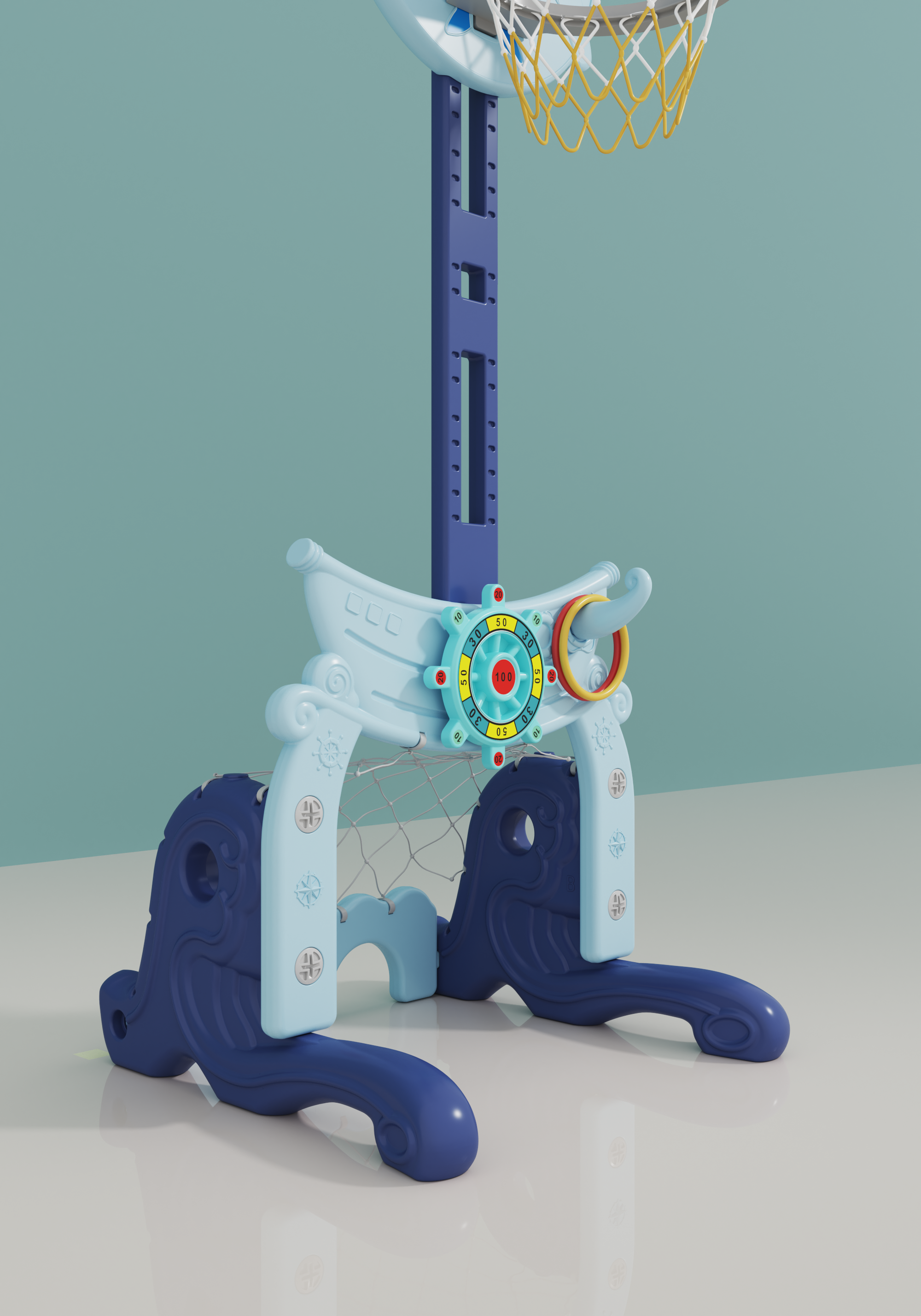 Dolphin/Captain theme Functional children plastic indoor adjustable height basketaball hoop stand with football and golf