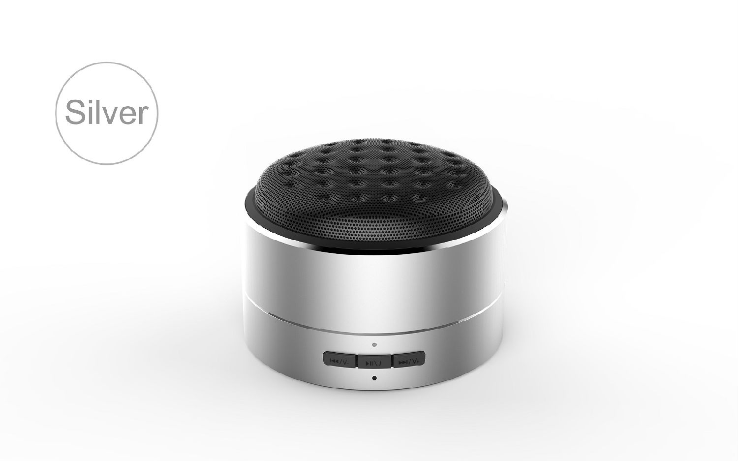 Portable bluetooth speaker Hands free speakerphone Up to 10m transmission distance Aluminum housing Built In rechargeable battery Output power 3W, acoustic sound, rich bass 1 hour recharge, up to 4 hours play time USB to Micro USB charging cable and 3.5mm audio cable included