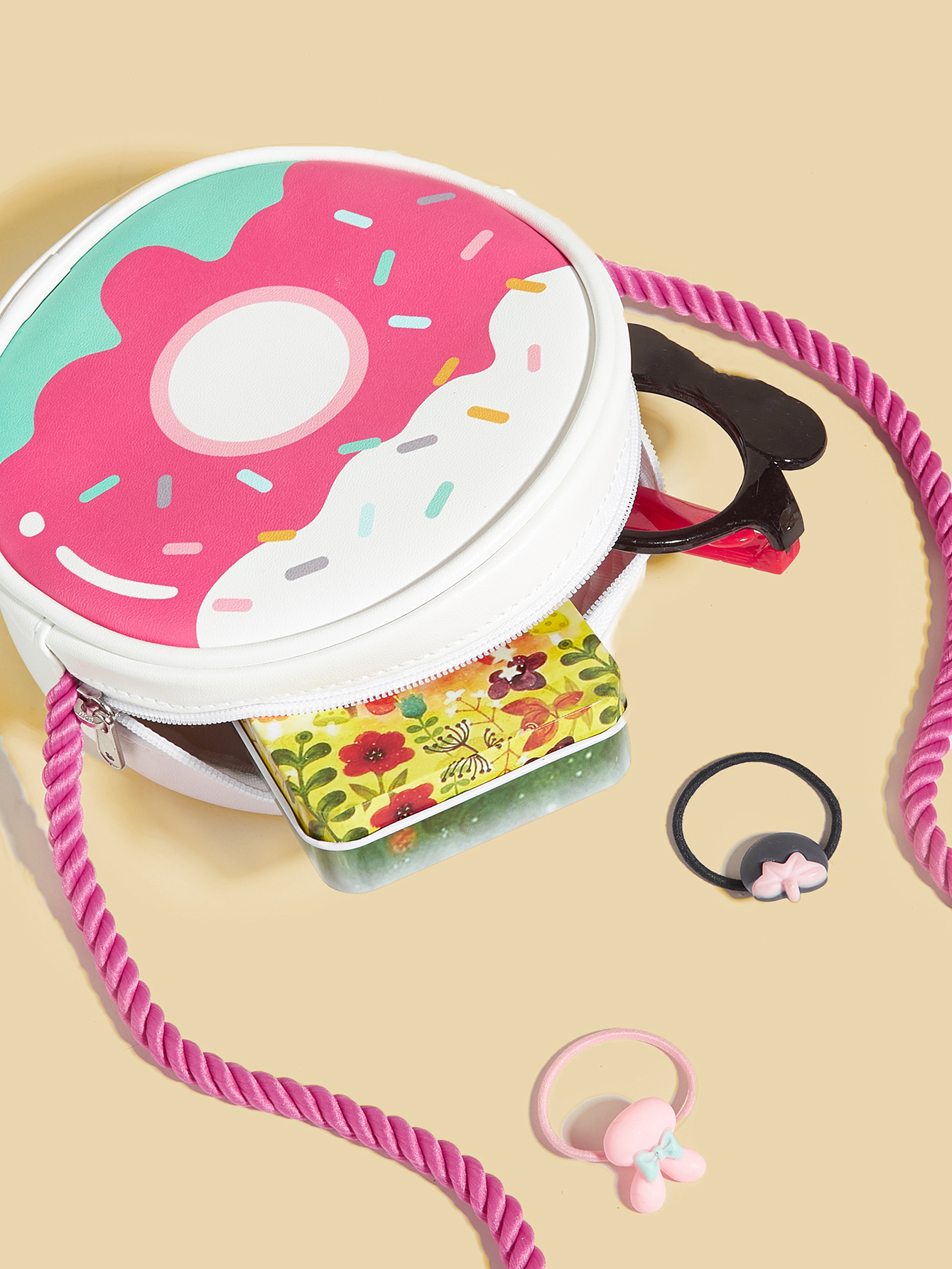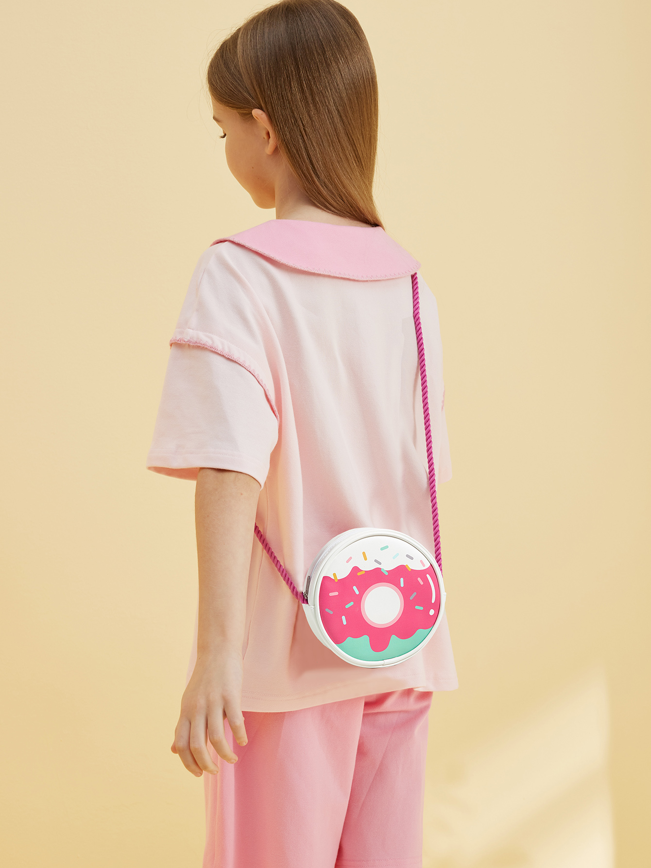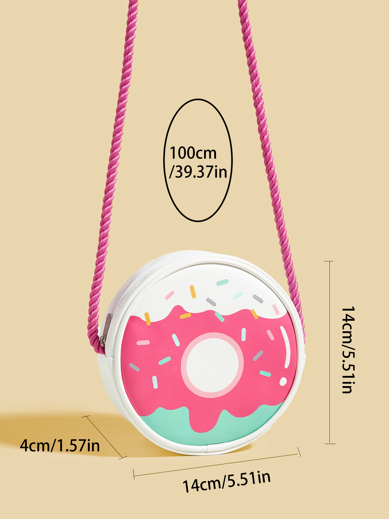 This donut-shaped crossbody bag for kids has caught the eye with itsunique and creative design.The inclusion body cleverly imitates theshape of the popular king ofthe dessert industry-doughnut, colorfusweet, and instantly inspires the children's endless childlike interestand joy.