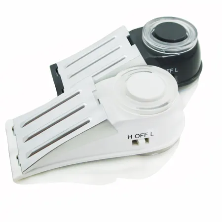 Doorstopper alarm: place on the floor behind the door, when somebody pushes the door, the alarm will sound with red light, the door could not be opened.